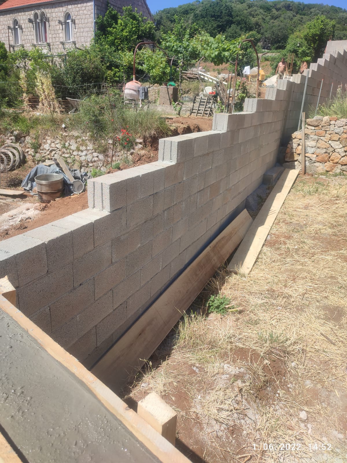 OBITELJSKA KUĆA LOPUD – BETONAŽA PRISTUPNOG PUTA I ZIDANJE PREGRADNOG ZIDA